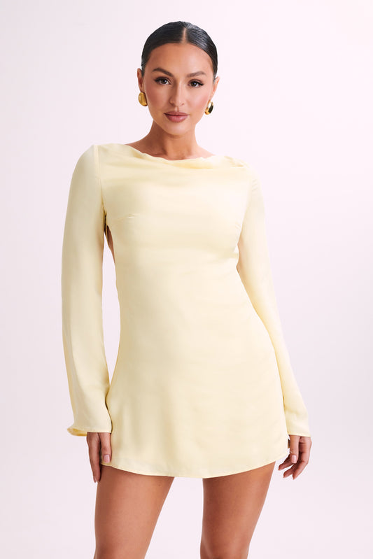 Ariana Satin Mini Dress With Cowl - Lemon