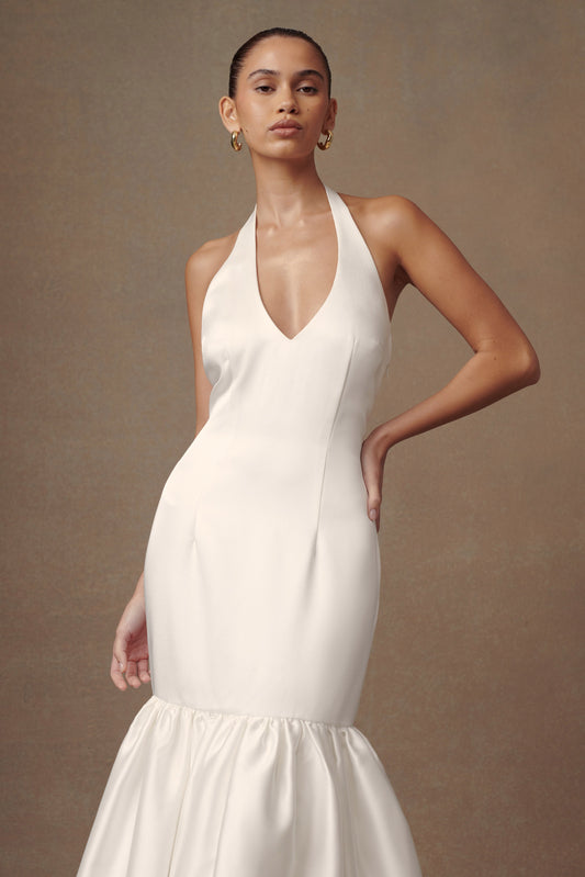 Danica Satin Halter Wedding Gown - White