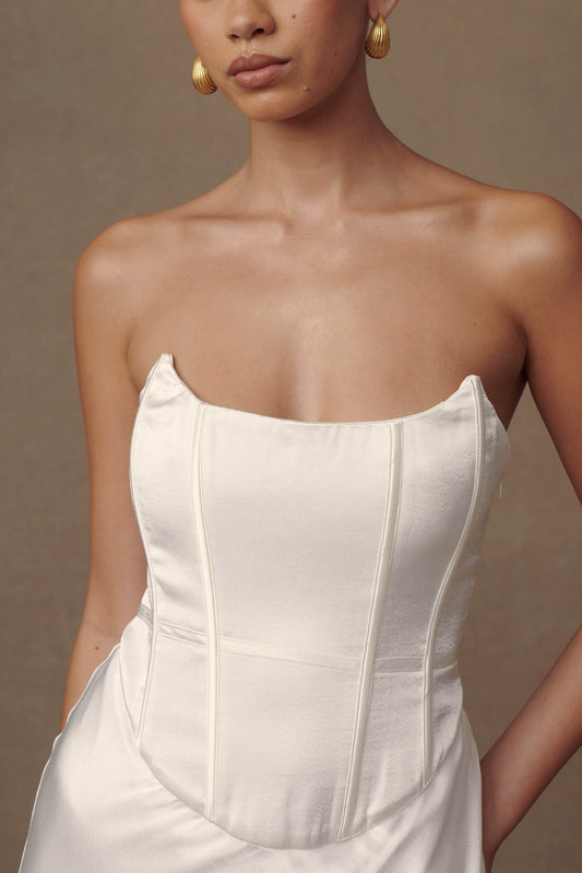 Satin Corset Maxi Dress - Ivory