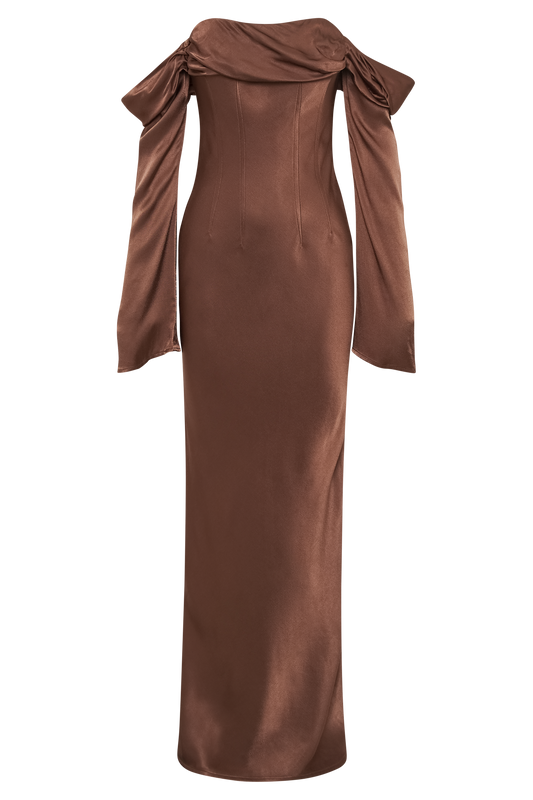 Off Shoulder Cowl Neck Maxi Dress - Mocha