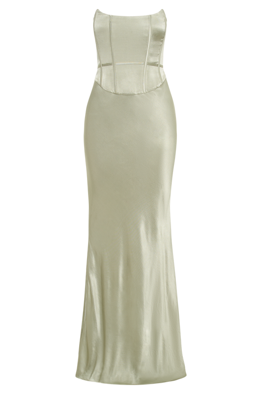 Harlow Satin Strapless Maxi Dress - Sage