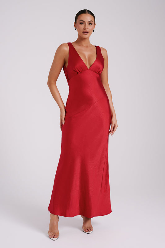 Jade Cowl Neck Backless Maxi Dress - Red
