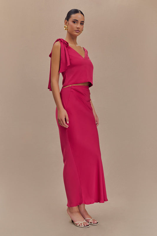 Satin Asymmetric Maxi Skirt - Pink Cherry