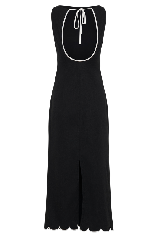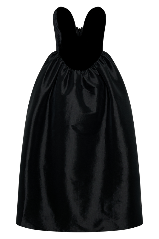 Bea Strapless Slinky Ruffle Midi Dress - Black
