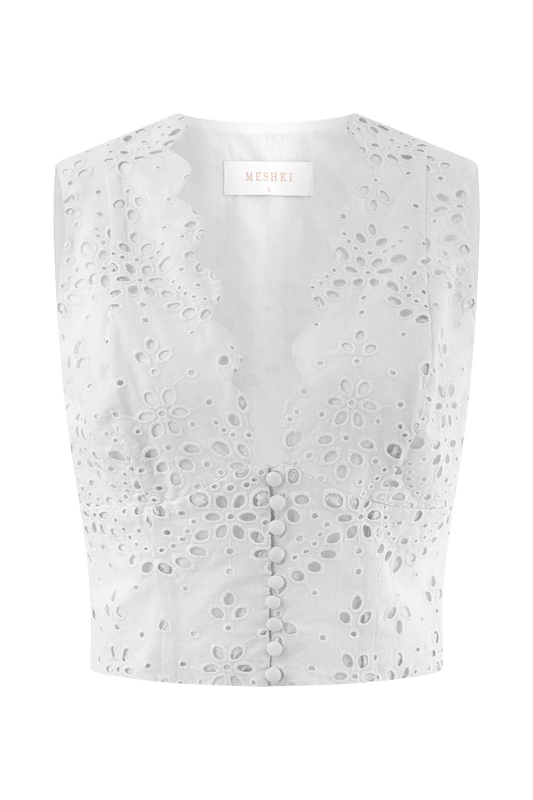 Arla Sleeveless Broderie Top - White