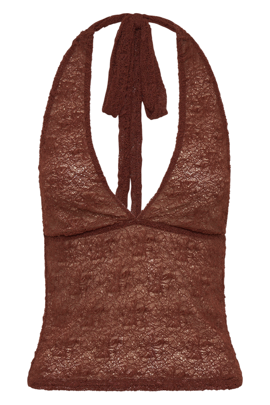 Sheer Lace Halter Top - Chilli