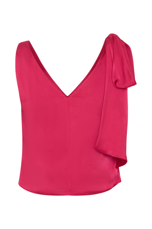 Nicola Satin Tie Sleeveless Top - Pink Cherry