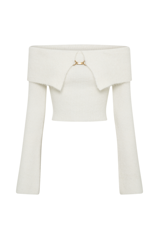 £5555% offBaxter Off Shoulder Fluffy Knit Top - Ivory