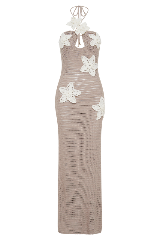 Kyla Floral Crochet Maxi Dress - Taupe/White