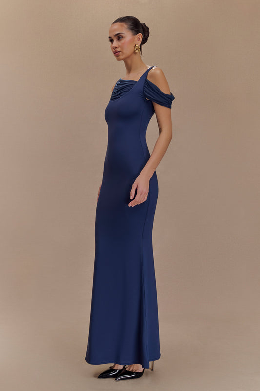 Satin And Lace Maxi Dress - Iris Blue