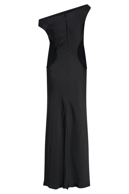 Dalia Off Shoulder Satin Maxi Dress - Black