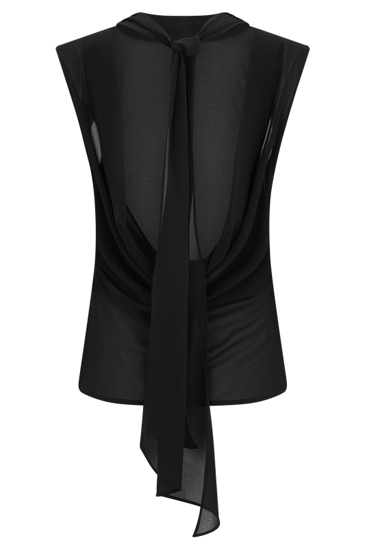 Saria Chiffon Low Back Top - Black