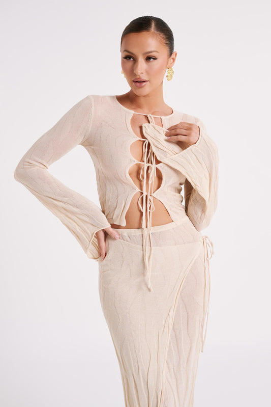 Knit Tie Long Sleeve Top - Ivory