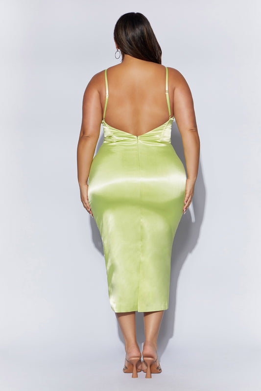 Claire Satin Drape Back Maxi Dress with Split - Green