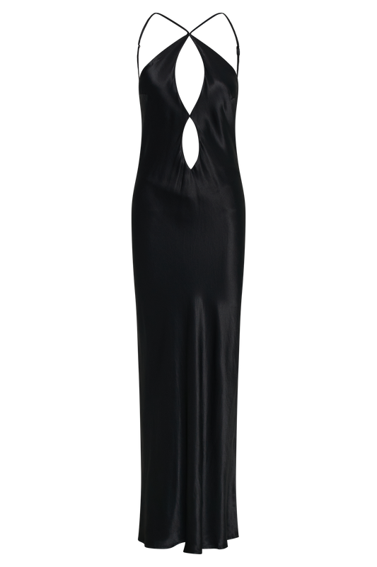 Lucia Satin Cut Out Maxi Dress - Black
