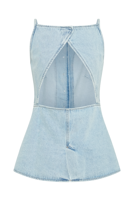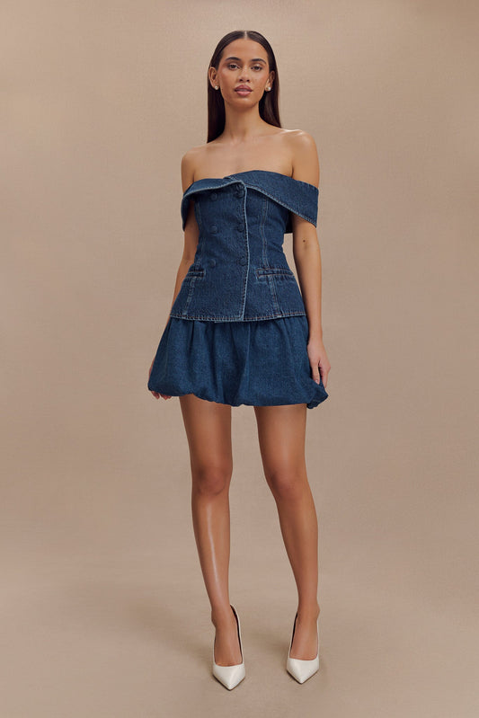 Madelyn Strapless Longline Denim Top - Indigo Blue