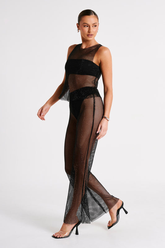 Diamante Mesh Tank Top - Black