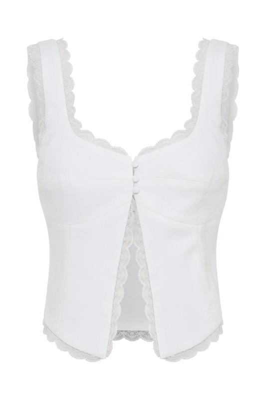 Linen Sleeveless Top - White