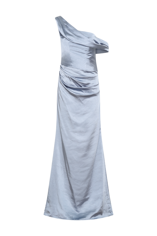 Dalia Off Shoulder Satin Maxi Dress - Frosted Blue