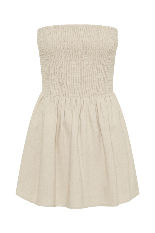 £7962% offHolland Linen Shirring Mini Dress - Natural