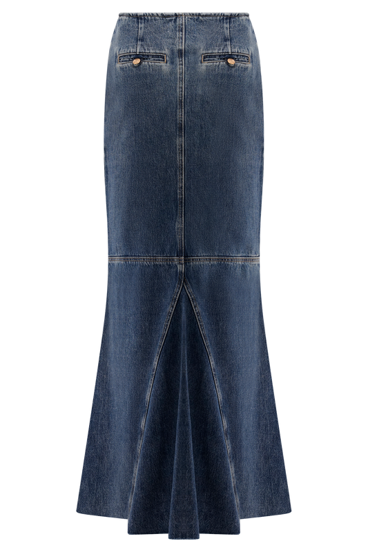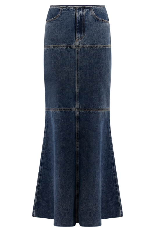 Loretta Denim Maxi Skirt - Washed Dark Blue