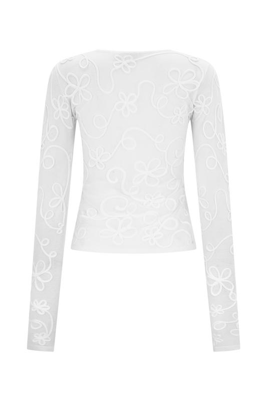 Omari Embroidery Long Sleeve Knit Top - Ivory