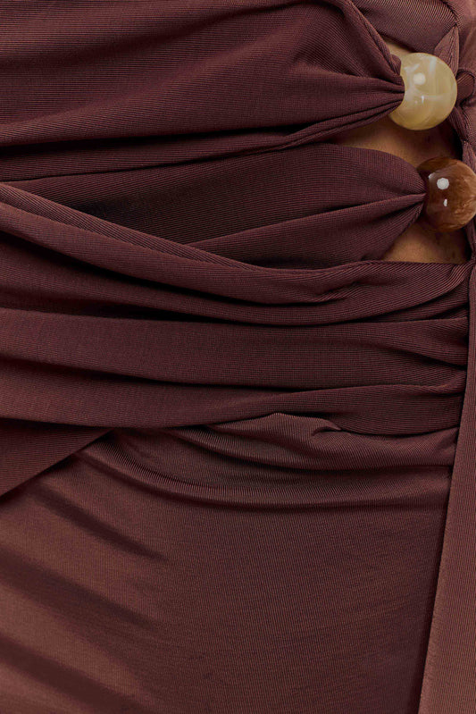 Alicent Slinky Beaded Mini Skirt - Chocolate