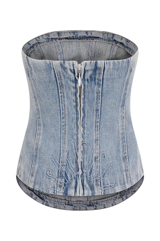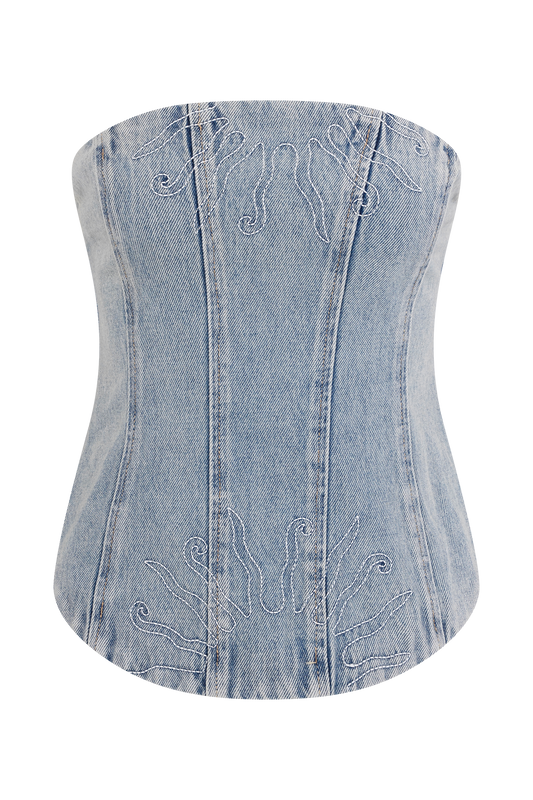 Regular price £75Unit price / perPreferred FibresAlessia Embroidered Denim Corset - Light Vintage