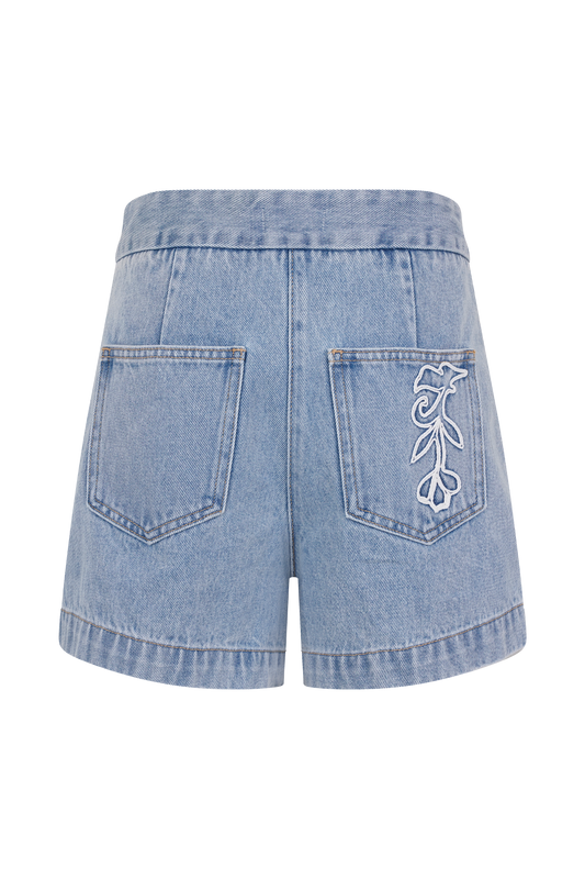 Regular price £69Unit price / perPreferred FibresKylee Embroidered Shorts - Mid Blue
