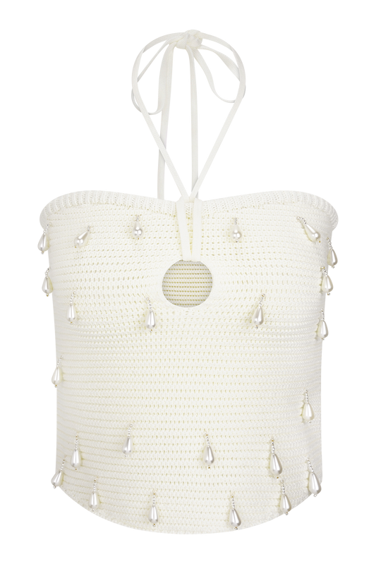 Regular price £75Unit price / perAletta Knit Pearl Halter Top - Ivory