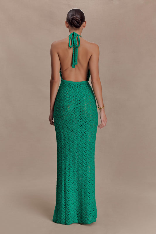 Deeliah Halterneck Crochet Maxi Dress - Emerald