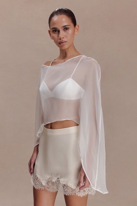 Kirstine Bralette With Chiffon Overlay - Ivory