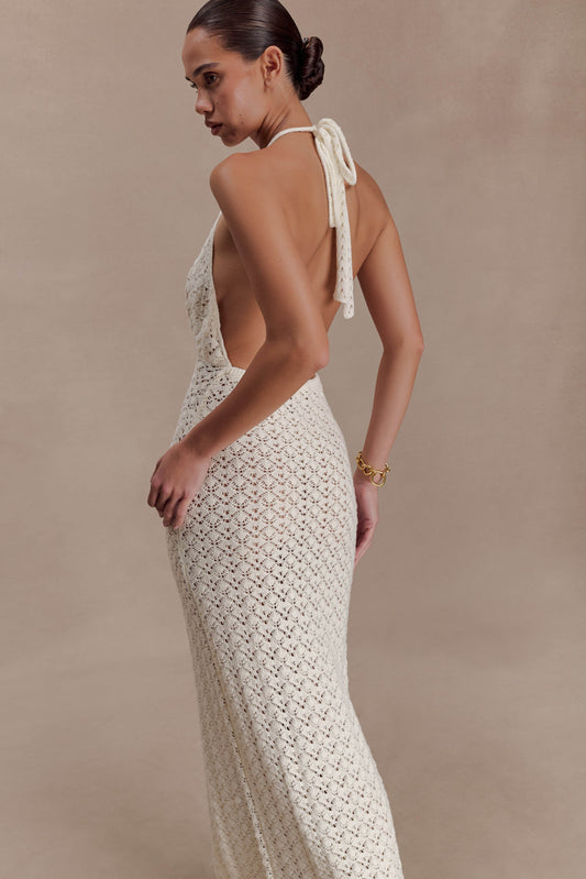 Deeliah Halterneck Crochet Maxi Dress - Ivory