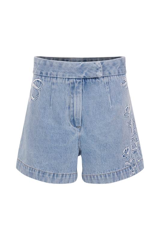 Julienne Denim Mini Skirt - Washed Indigo Blue