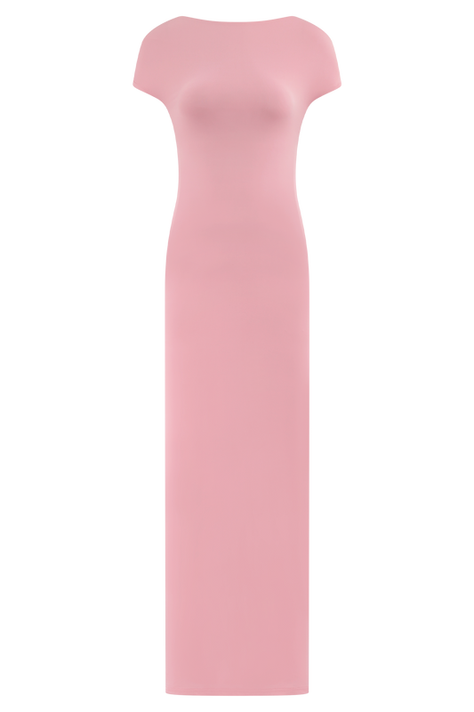 Slinky And Mesh Maxi Dress - Pale Pink