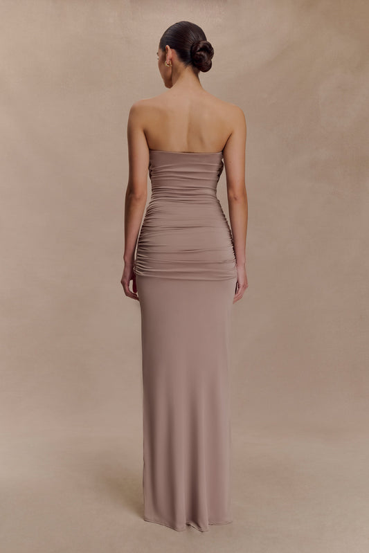 Mirren Strapless Slinky Maxi Dress - Bronze