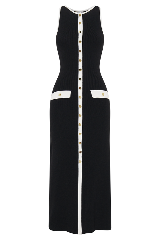 Sawyer Sleeveless Buttoned Maxi Dress - Black/White