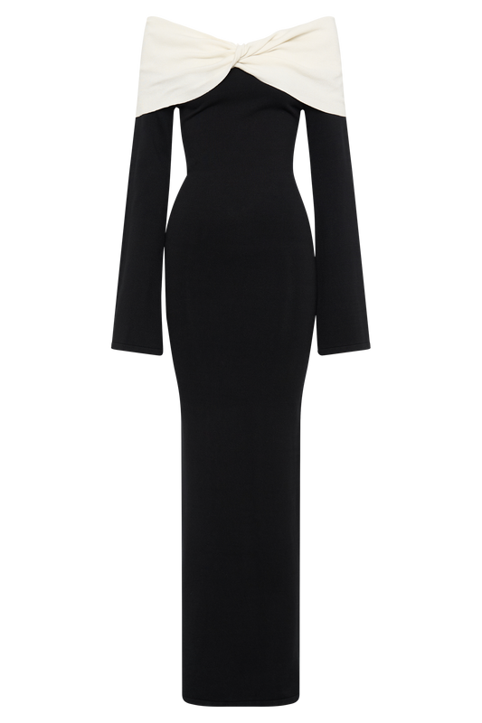 Sandrine Off Shoulder Knit Maxi Dress - Black/White