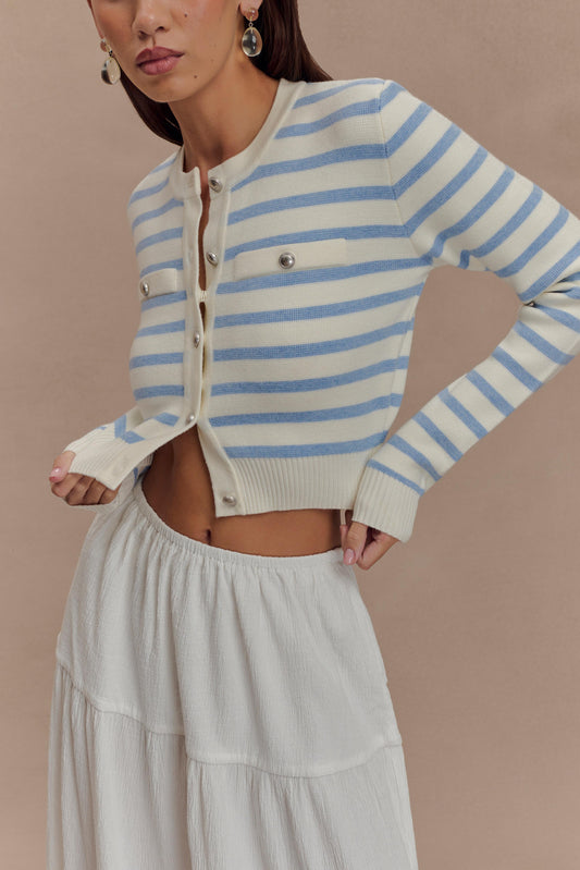 Tanner Striped Knit Cardigan - Light Blue/White