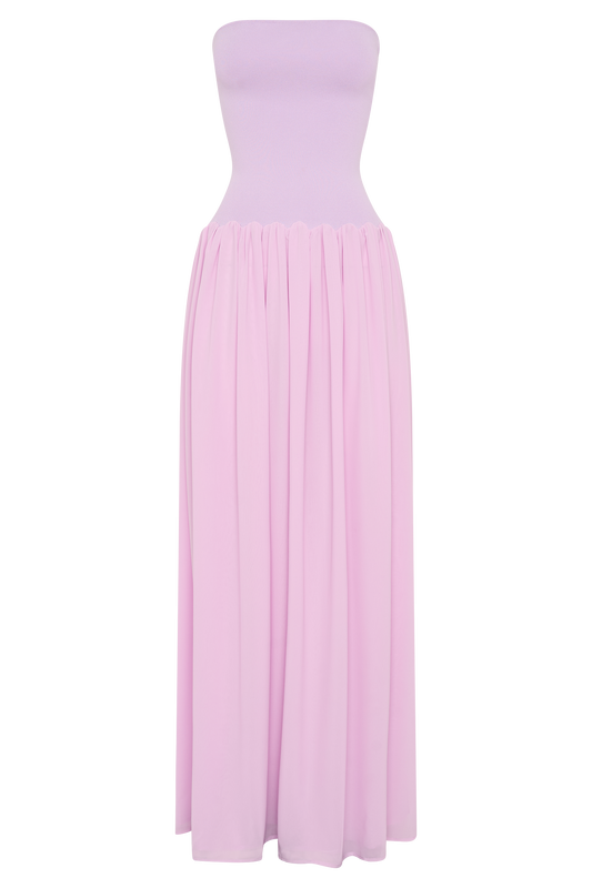 Knit And Chiffon Strapless Maxi Dress - Lilac