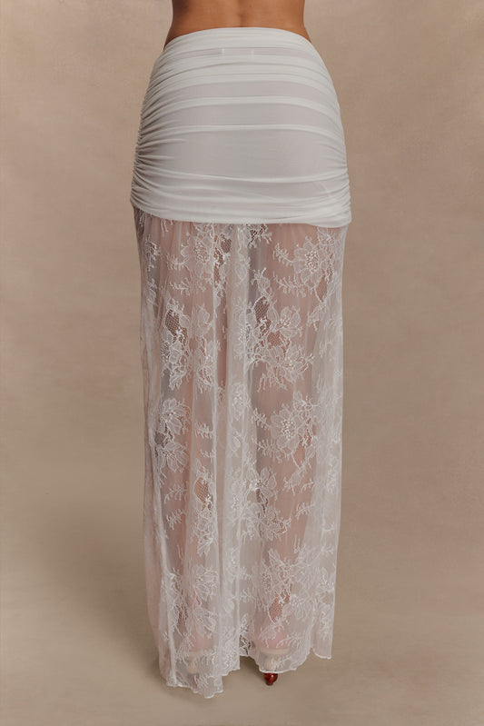Guinevere Lace And Mesh Maxi Skirt - Ivory