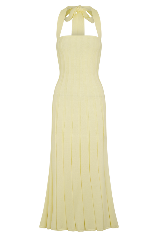 Halter Knit Midi Dress - Lemon