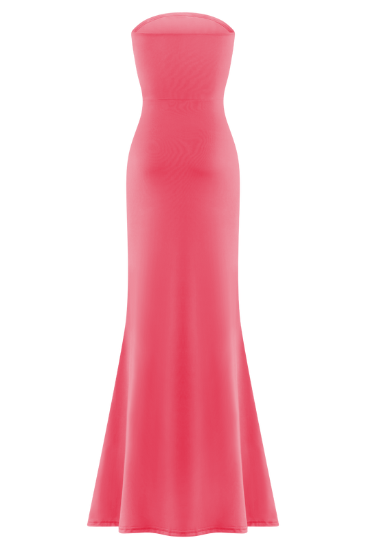 Madison Strapless Slinky Maxi Dress - Coral
