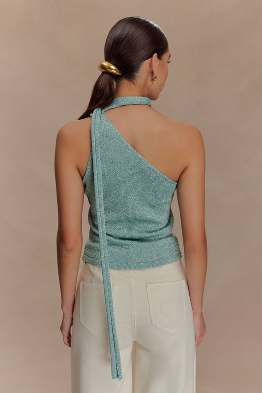 £8933% offLeone One Shoulder Metallic Knit Top - Aqua