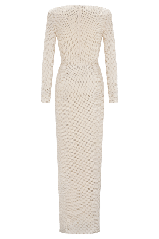 Deanna Long Sleeve Diamante Maxi Dress - Gold