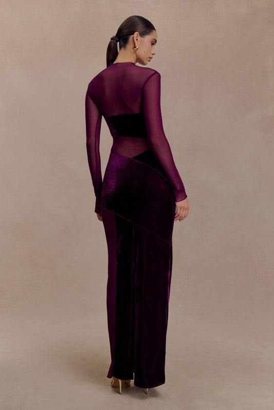 Davina Velvet And Mesh Maxi Dress - Purple