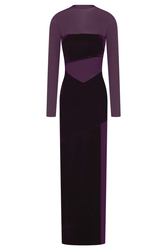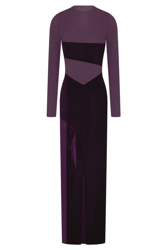 Velvet And Mesh Maxi Dress - Purple