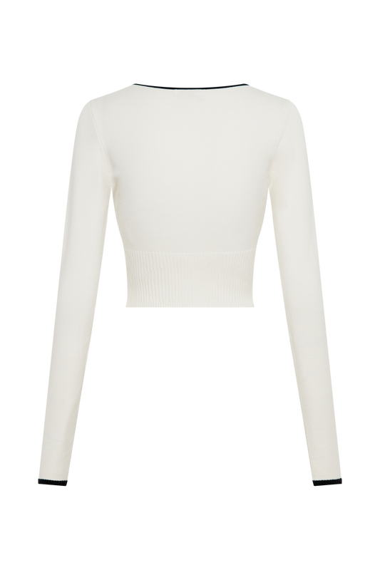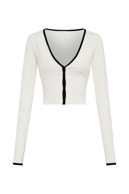 Jolene Contrast Button Up Knit Cardigan - White