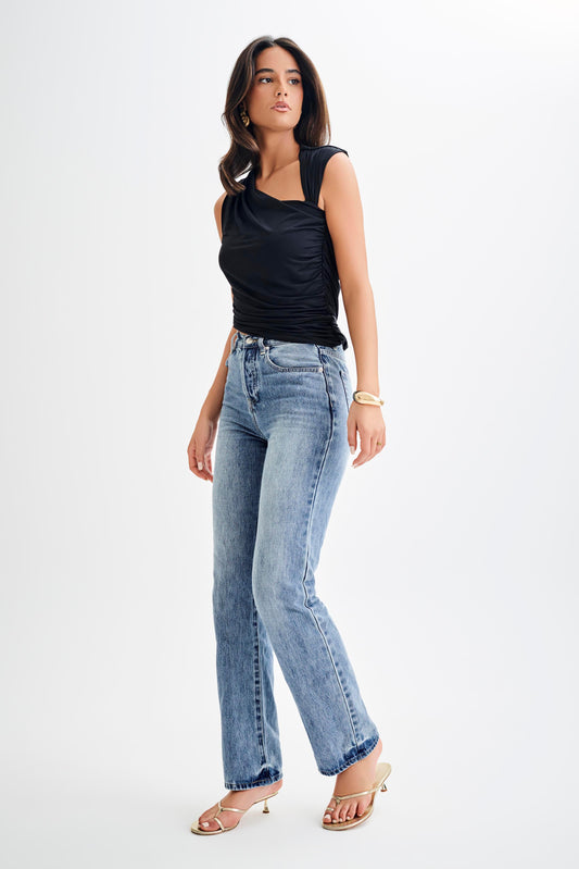 Tiarna Slinky Ruched Top - Dark Charcoal