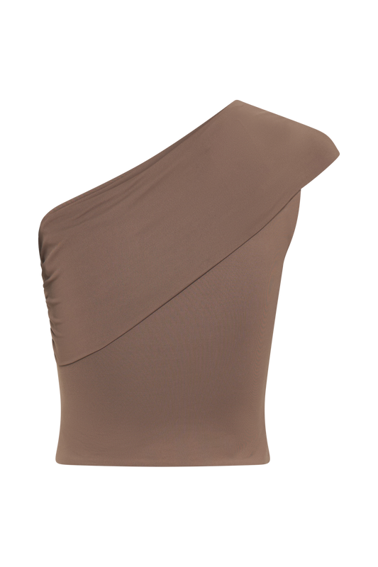 One Shoulder Recycled Nylon Twist Top - Smoke
